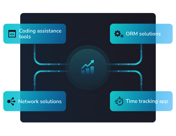 Devart offers a wide range of products grouped into categories: database management tools (dbForge), data access components (Data Access Components), data integration solutions (Skyvia), drivers and providers for connectivity, and productivity tools. Each product is designed to improve the efficiency of development, database administration, and integration, with support for Windows, macOS, Linux, and cloud environments.