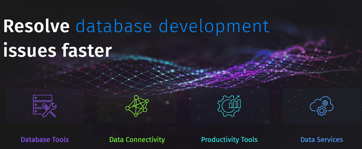| Meet dbForge, a well-known line of products for developing, managing, and administering SQL Server, MySQL, Oracle, and PostgreSQL databases. | Get the best solutions that fully meet your data connection needs: ADO.NET, ODBC, Python, SSIS, Excel, dbExpress, and Delphi components. | Discover Skyvia, a no-code cloud data integration platform for ETL, ELT, reverse ETL, data migration, workflow automation, and real-time connectivity. | Expand your work with tools that help you write, compare, merge, and test code, powerful ORM solutions, and a web application for tracking time and invoicing. |